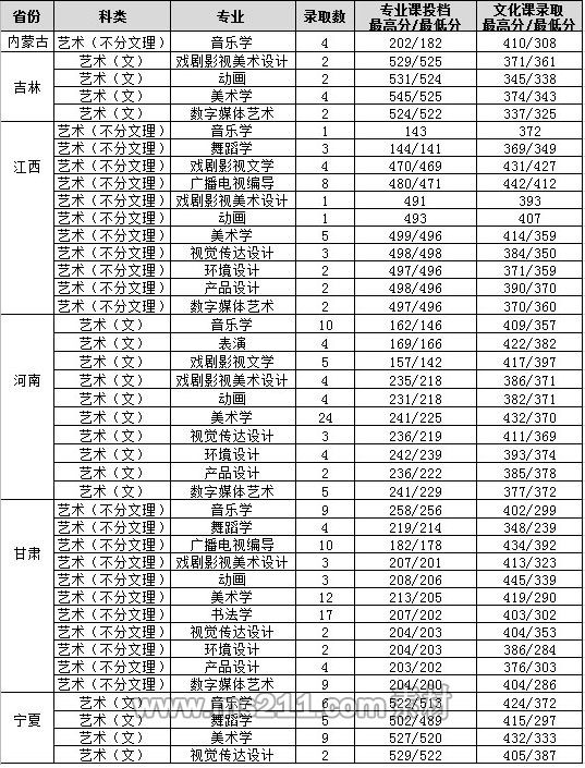 藝術類專業(yè)投檔方式及比例按照教育部相關政策和相關省區(qū)招生主管部門的規(guī)定執(zhí)行。進檔的省外各藝術類專業(yè)考生在文化課成績達到所在省區(qū)規(guī)定的分數(shù)線后,按相應專業(yè)統(tǒng)考或聯(lián)考成績由高到低擇優(yōu)錄取;陜西省的藝術類專業(yè)錄取辦法按照陜西省教育考試院《關于做好2020年陜西省普通高等學校藝術類專業(yè)考試招生工作的通知》文件規(guī)定執(zhí)行。錄取中若出現(xiàn)專業(yè)課成績相同,按文化課成績從高到低擇優(yōu)錄取;文化課和專業(yè)課成績都相同的,則分別按語文、數(shù)學、英語、綜合的單科成績由高到低擇優(yōu)錄取。