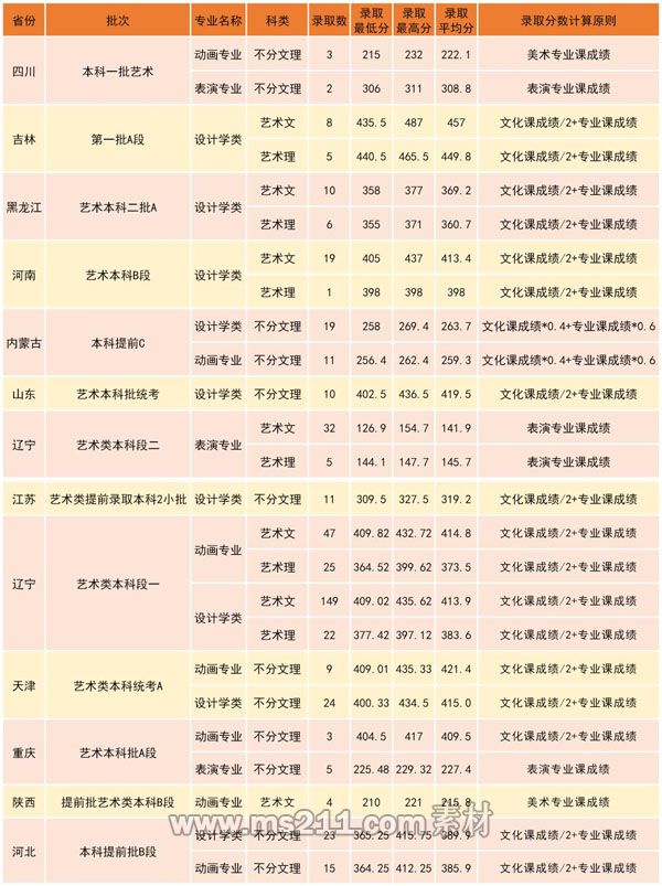 沈陽工學(xué)院2020年藝術(shù)類本科專業(yè)錄取分?jǐn)?shù)線
