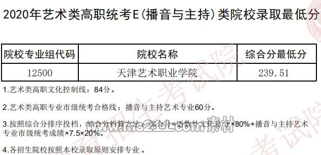 相關(guān)熱詞搜索:天津市 / 藝術(shù)類高職 / 統(tǒng)考E(播音與主持)類 / 院校錄取最低分