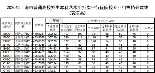 相關(guān)熱詞搜索:上海市 / 本科 / 藝術(shù)甲批次 / 平行段院校 / 表演類專業(yè)組 / 投檔分?jǐn)?shù)線
