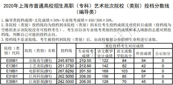 相關熱詞搜索:上海市 / 高職(??疲┧囆g批次院校 / 編導類 / 投檔分數(shù)線