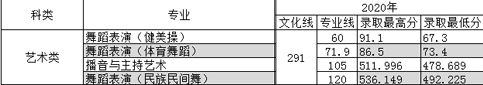 河北體育學院2020年河北省藝術類本科錄取分數線