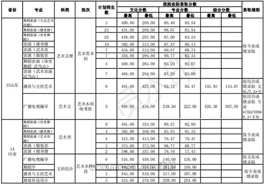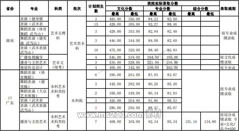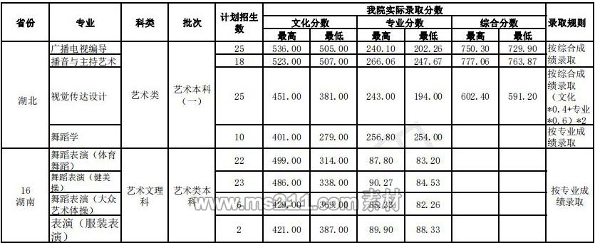 武漢體育學(xué)院藝術(shù)類本科錄取分?jǐn)?shù)線
