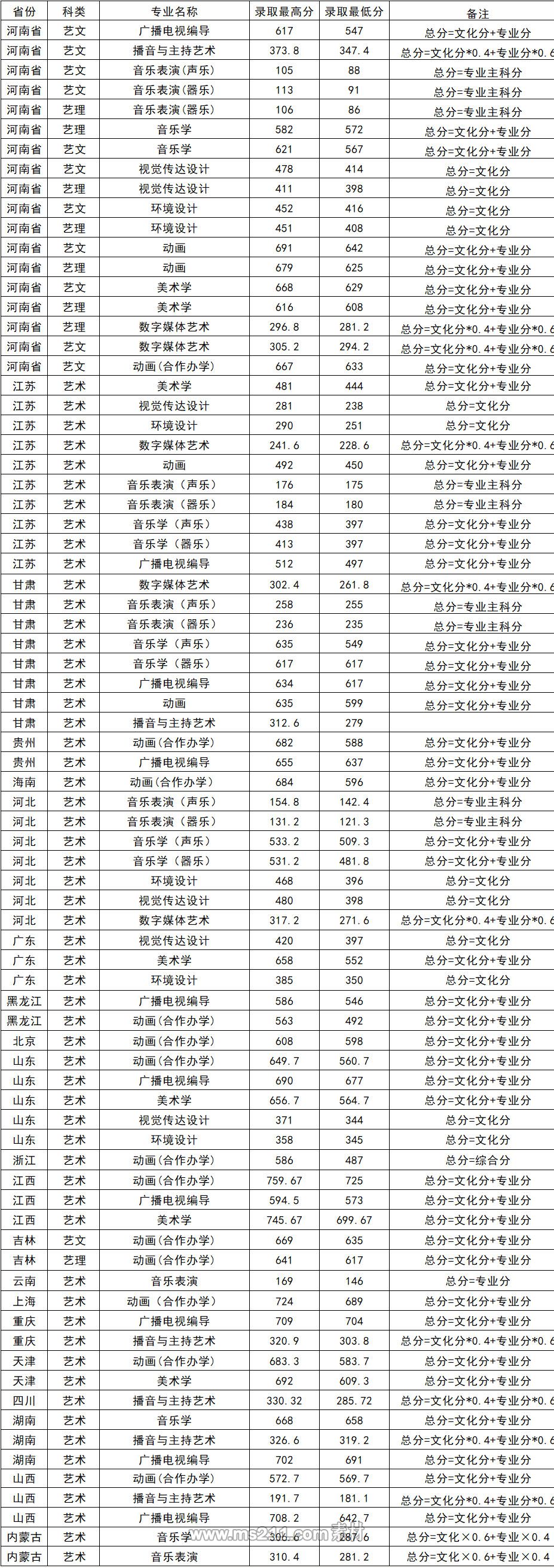 ③數(shù)字媒體藝術(shù)專業(yè)、播音與主持藝術(shù)專業(yè):按專業(yè)分×60%與文化分×40%相加后的總分從高到低依次擇優(yōu)錄?。ǔ霈F(xiàn)并列分時(shí),依次以專業(yè)分、文化總分、語數(shù)外分排序)。