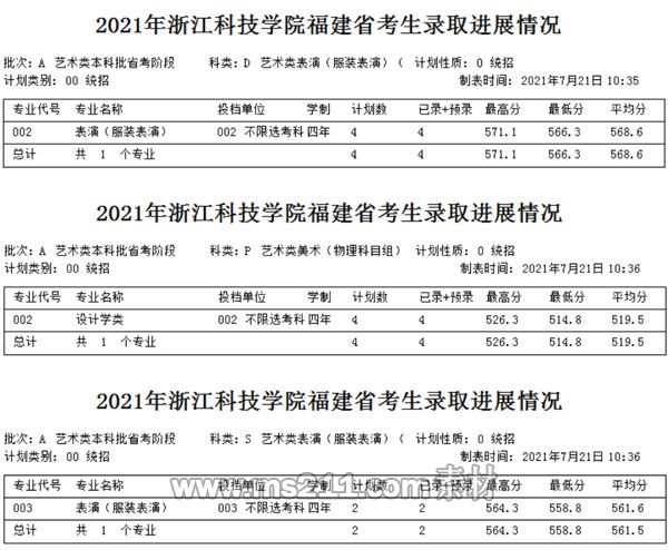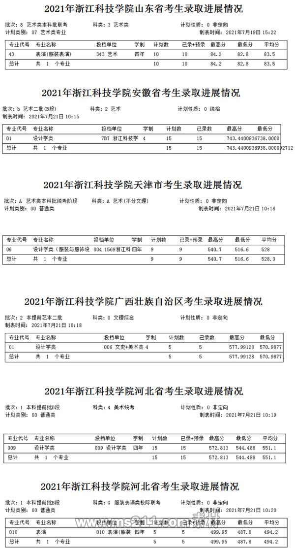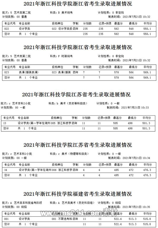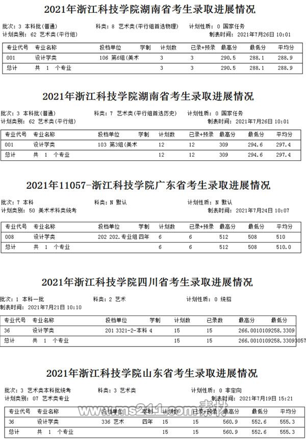 2021年浙江科技學(xué)院藝術(shù)類本科專業(yè)錄取分?jǐn)?shù)線