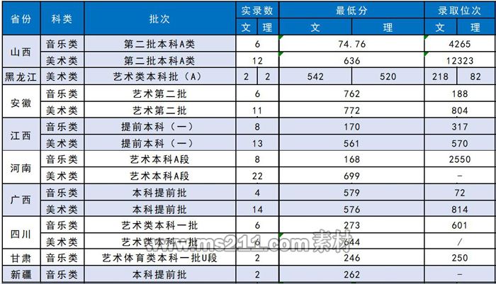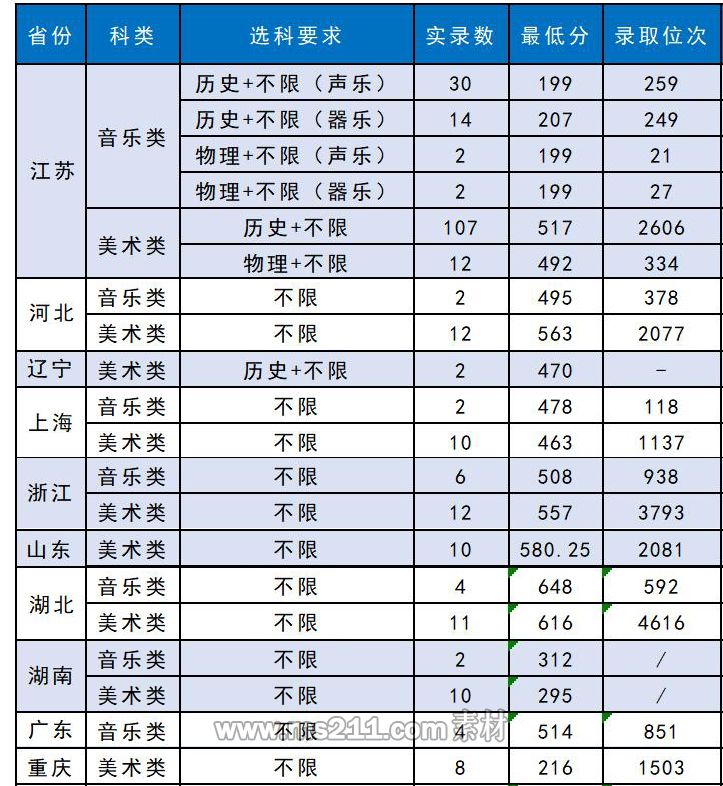 (1)音樂類:按省統(tǒng)考成績(jī)錄取,考生各項(xiàng)成績(jī)達(dá)到所在省相應(yīng)批次投檔要求,以專業(yè)成績(jī)排序,根據(jù)計(jì)劃按“分?jǐn)?shù)優(yōu)先、遵循志愿”的原則錄取,如相同則以文化分高者優(yōu)先,再相同者以語文和外語總分高者優(yōu)先。