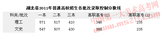 2011年湖北省普通高等學(xué)校招生錄取控制分?jǐn)?shù)線