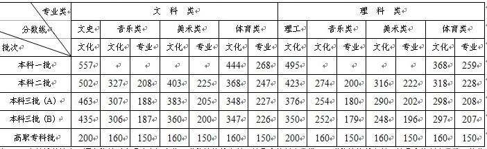 | 科類/批次 | 一本 | 二本 | 三本A | 三本B | 高職(??疲?/td> |