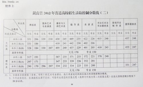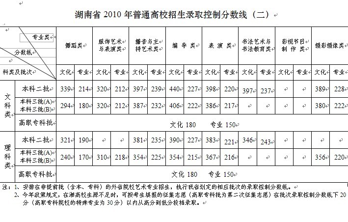 2010年湖南高考錄取分數(shù)線(含美術(shù))