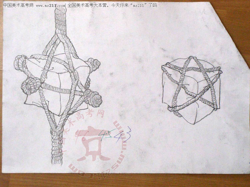2003年北京服裝學(xué)院美術(shù)高考優(yōu)秀試卷(第1套創(chuàng)意速寫:繩子捆綁正方體)2007102906