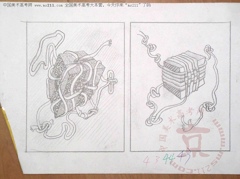 2003年北京服裝學院美術(shù)高考優(yōu)秀試卷(第1套創(chuàng)意速寫:繩子捆綁正方體)2007102911
