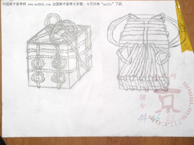 2003年北京服裝學(xué)院美術(shù)高考優(yōu)秀試卷(第1套創(chuàng)意速寫:繩子捆綁正方體)2007102930