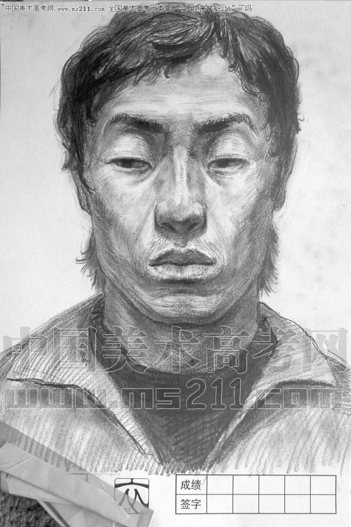 2004年北京服裝學(xué)院美術(shù)高考優(yōu)秀試卷(第1套素描默寫:正面男青年)2007110308