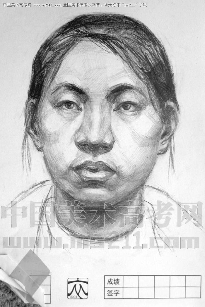 2004年北京服裝學(xué)院美術(shù)高考優(yōu)秀試卷(第2套素描默寫:正面女青年)2007110429