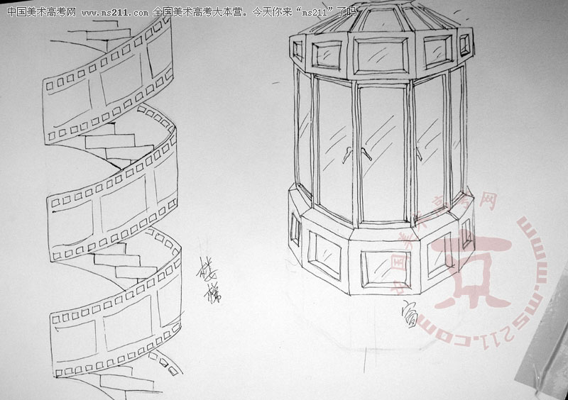2004年北京服裝學(xué)院美術(shù)高考優(yōu)秀試卷(第4套創(chuàng)意速寫:門、梯、窗的聯(lián)想,任選兩個)2007110612