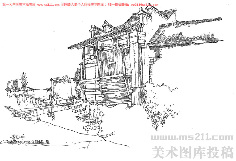中國美術學院繼續(xù)教育學院環(huán)境藝術設計教師,李彤洲,風景速寫美術高考投稿作品2012121835