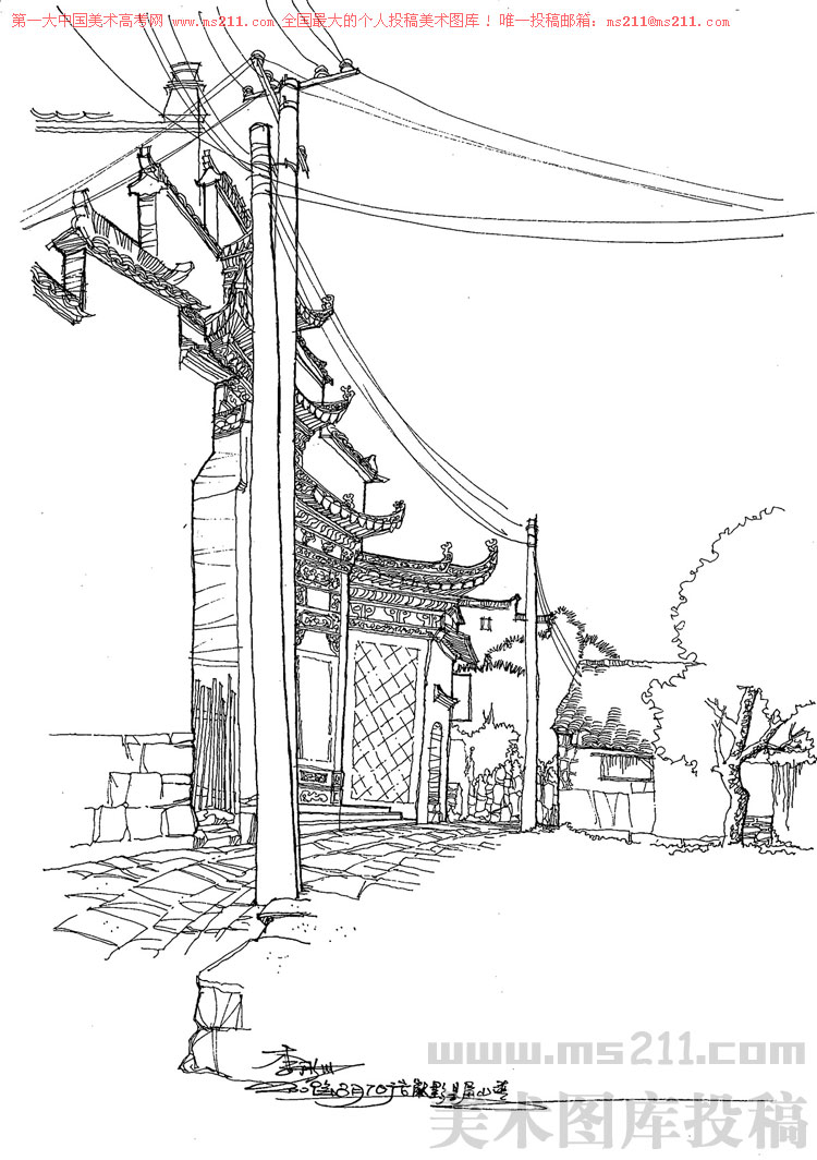 中國美術(shù)學(xué)院繼續(xù)教育學(xué)院環(huán)境藝術(shù)設(shè)計(jì)教師,李彤洲,風(fēng)景速寫美術(shù)高考投稿作品2013011408