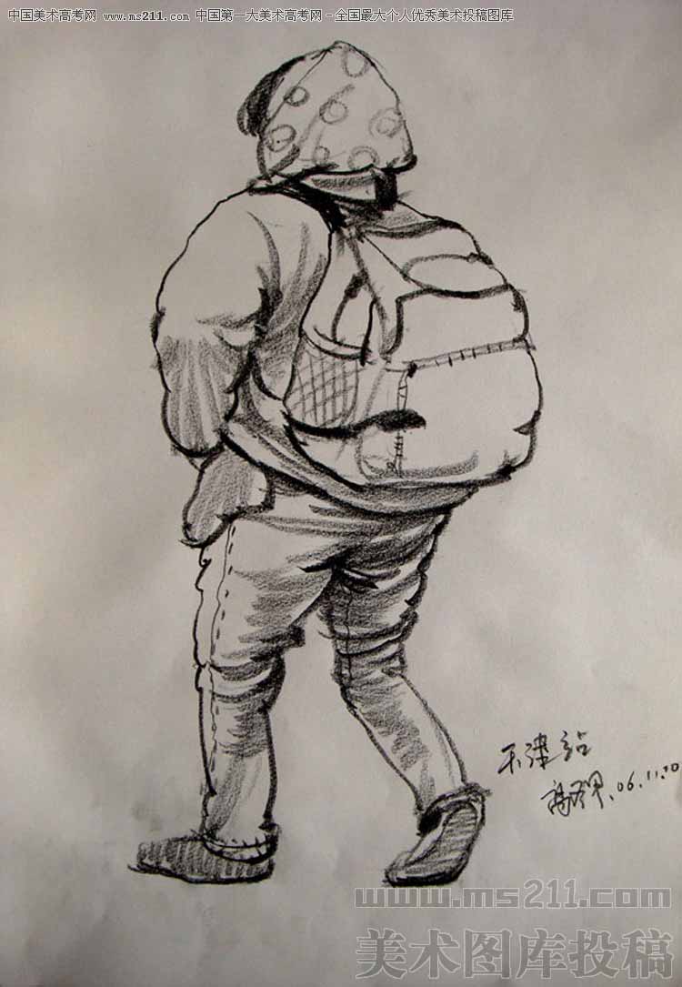 天津美術(shù)學(xué)院視覺(jué)傳達(dá)設(shè)計(jì)系07級(jí)第一名,高登甲,人物速寫美術(shù)高考投稿作品2011011402