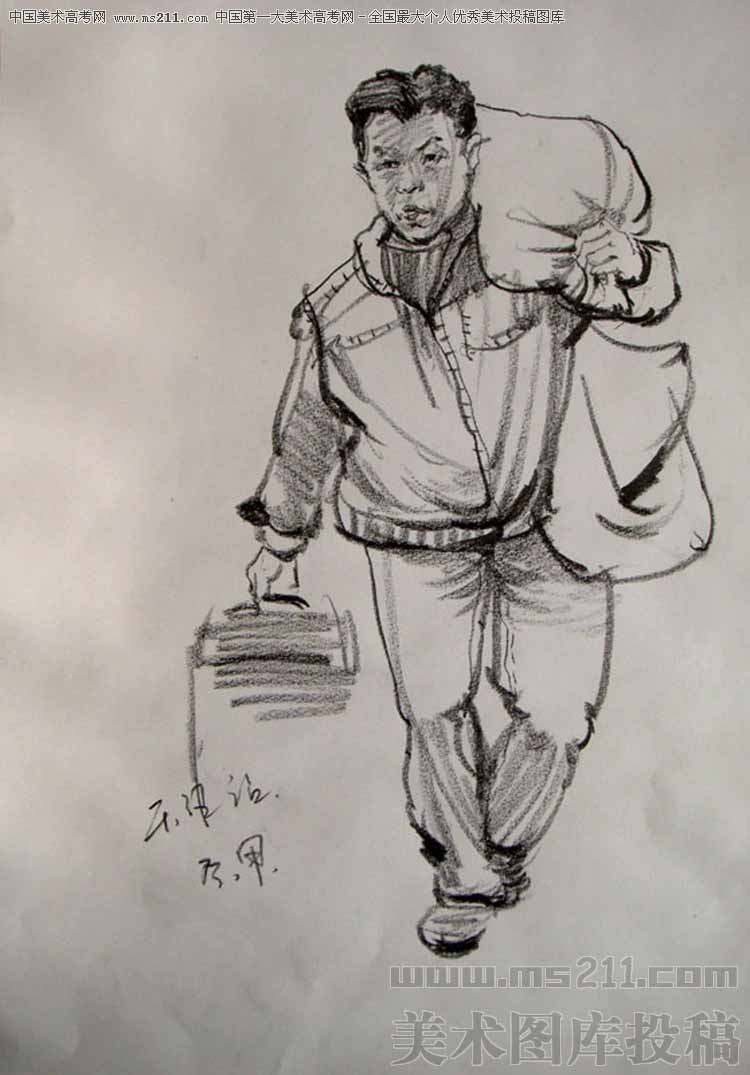 天津美術學院視覺傳達設計系07級第一名,高登甲,人物速寫美術高考投稿作品2011011403