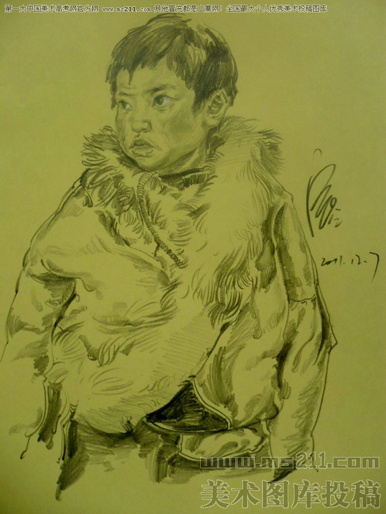 天津美術(shù)學(xué)院綜合繪畫系2008級(jí),鄭涵靜,人物速寫美術(shù)高考投稿作品2012022701