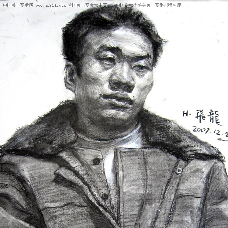 安徽阜陽,黃飛龍,素描半身帶手美術(shù)高考投稿作品2008010301
