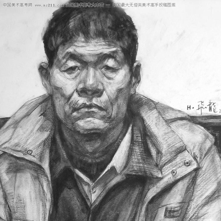 安徽阜陽(yáng),黃飛龍,素描半身帶手美術(shù)高考投稿作品2008010304