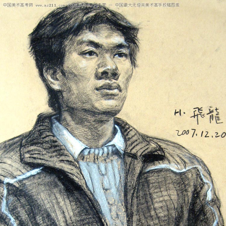 安徽阜陽(yáng),黃飛龍,素描半身帶手美術(shù)高考投稿作品2008010307