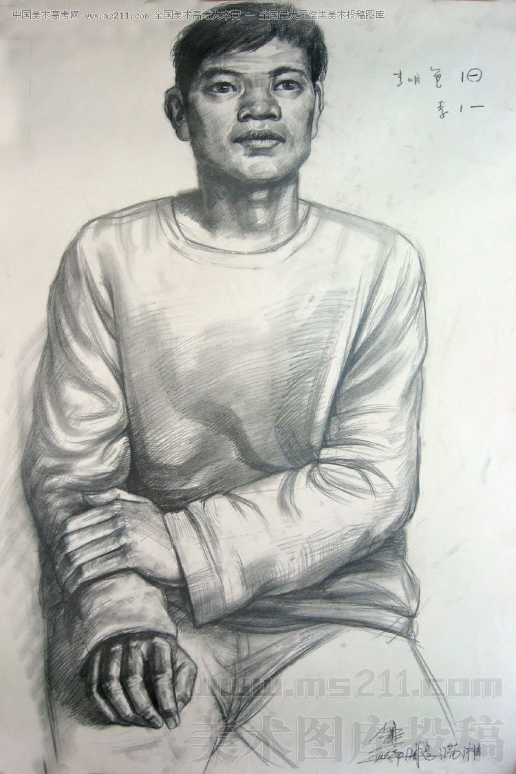 西安美術學院裝飾系2004級,李明,素描半身帶手美術高考投稿作品2009021803