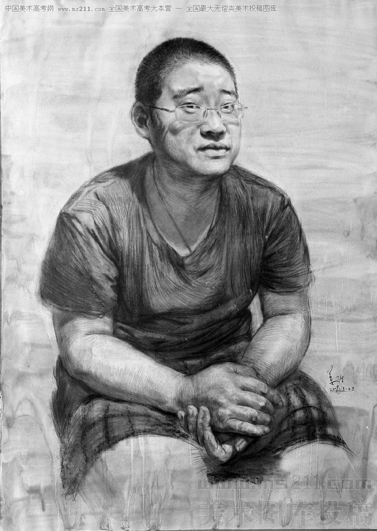 廣州美術學院2004屆,姜浩,素描半身帶手美術高考投稿作品009041108