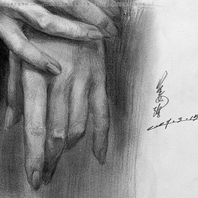 廣州美術學院2004屆,姜浩,素描半身帶手美術高考投稿作品2009041121