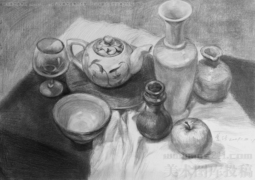 廣州美術學院2004屆,姜浩,素描靜物美術高考投稿作品2009040908