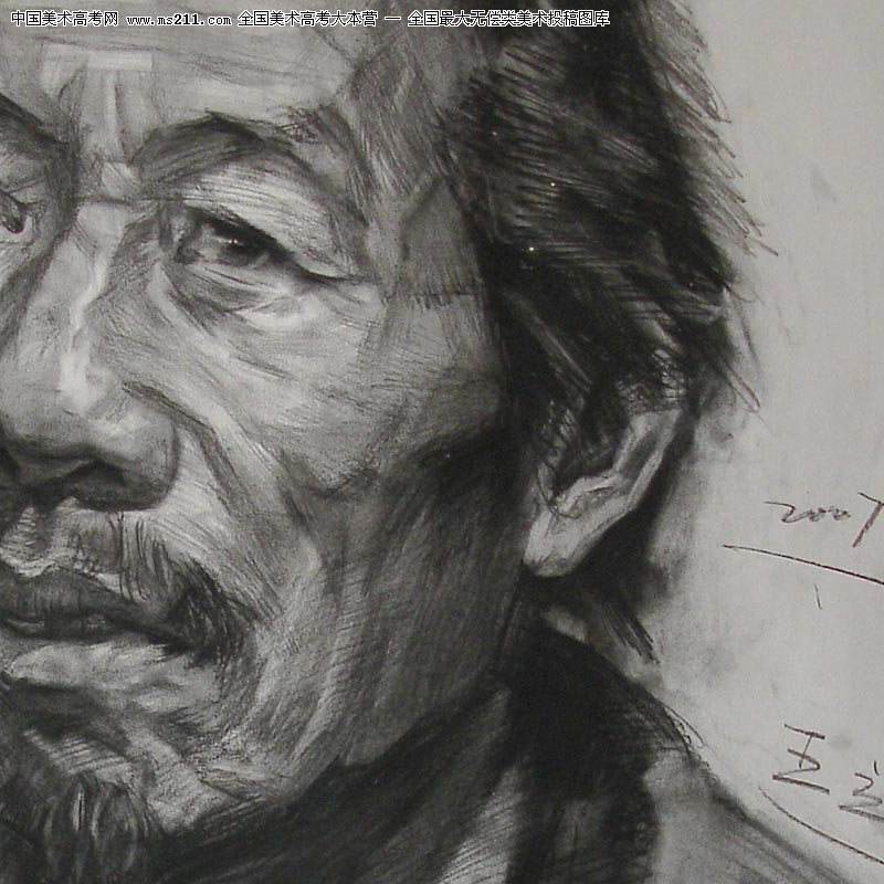 廣州美術(shù)學(xué)院藝術(shù)設(shè)計(jì)2006級(jí),王立凱,素描頭像美術(shù)高考投稿作品(全開(kāi)紙1小時(shí)-局部特寫(xiě))3