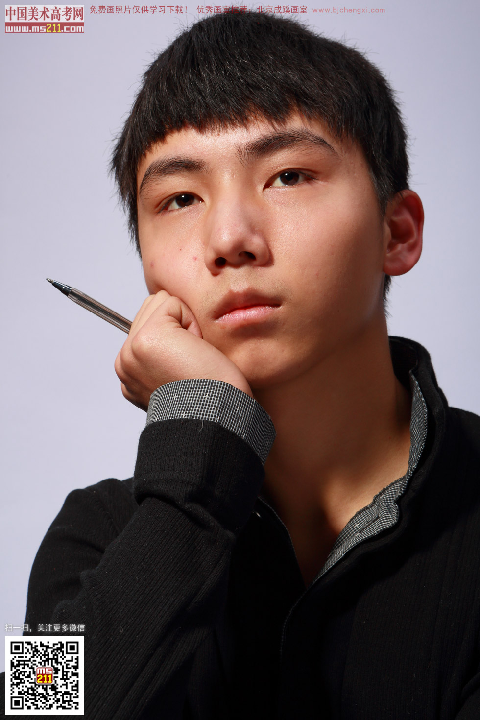頭像帶手_男青年_美術高考網免費畫照片2014020128