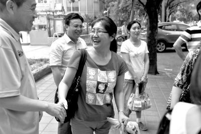 王麗榮說,全部送考老師都設(shè)計(jì)了紅色的T恤衫,正面有校徽,背后則是個(gè)大拇指。昨天下午,女兒牽著媽媽的手,一起看了考場(chǎng)。王麗榮也不忘計(jì)算從賓館到學(xué)校的時(shí)間,她決定今早7:30從賓館出來。