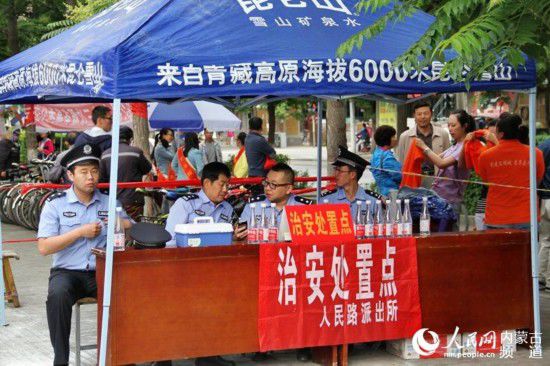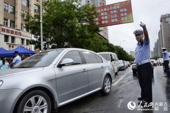 呼和浩特賽罕區(qū)十八中考點(diǎn)周?chē)鹆司渚€維持秩序