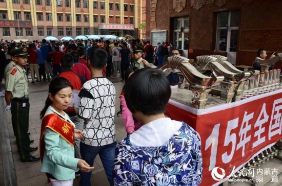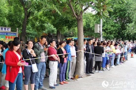 人民網(wǎng)呼和浩特6月7日電(曾曉強(qiáng) 王慧 實(shí)習(xí)生 李睿) 6月7日,呼和浩特市十八中、十九中的學(xué)生在老師和家長(zhǎng)們的鼓勵(lì)下有序走進(jìn)考場(chǎng)。