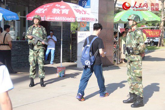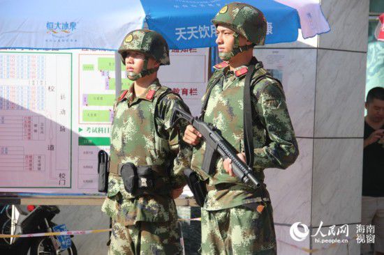 6月8日,??谒?a style="color: rgb(15, 107, 153);" target="_blank">中考點(diǎn)門口守護(hù)的武警