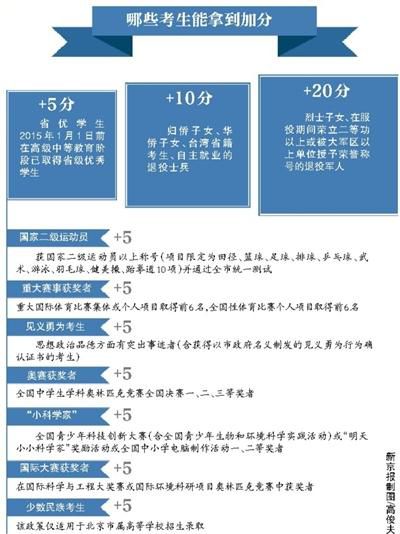 北京市教委介紹,北京市屬高校的地方性加分,由去年的少數(shù)民族、市優(yōu)干和市三好,削減為今年的少數(shù)民族考生一項,將在高考成績總分的基礎(chǔ)上增加5分向高校提供檔案,由高校審查決定是否錄取。