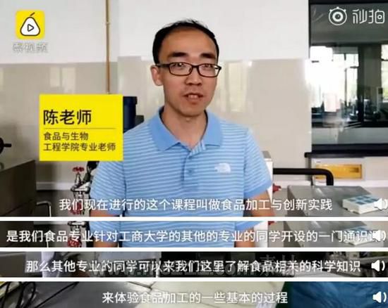 據(jù)浙江工商大學食品與生物工程學院專業(yè)陳老師介紹,這門課是針對食品專業(yè)以外的同學開設的一門通識課,可以讓其他專業(yè)的同學們體驗食品加工的基本過程。