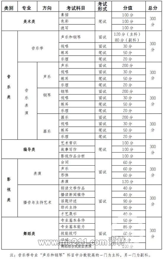 除我市統(tǒng)考未涉及藝術(shù)類專業(yè)外,其他藝術(shù)類考生均需參加我市專業(yè)統(tǒng)考。校考專業(yè)類別及報(bào)考要求以學(xué)校招生簡章為準(zhǔn)。