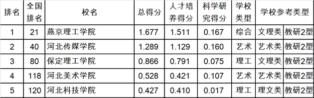 2019年評價河北省5所民辦本科大學,第一名燕京理工學院。