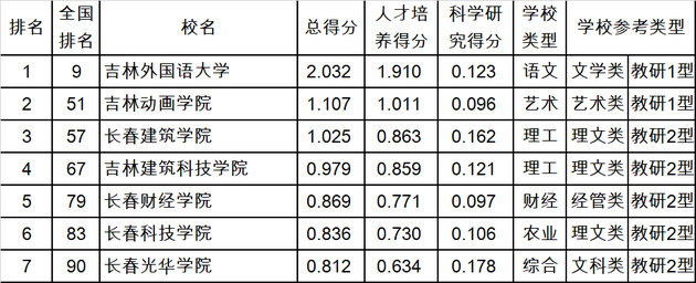2019年評價吉林省7所民辦本科大學,第一名吉林外國語大學。