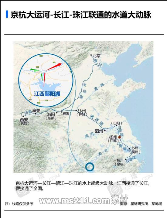 唐安史之亂,北方人口大規(guī)模南遷,以江西為代表的長江流域獲得了巨大發(fā)展;而京杭大運河將整個江西水系納入全國黃金水道系統(tǒng),江西交通地位顯耀。