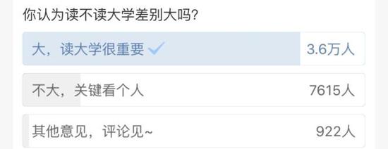 有人發(fā)起了一場投票:你認為讀不讀大學差別大嗎?
