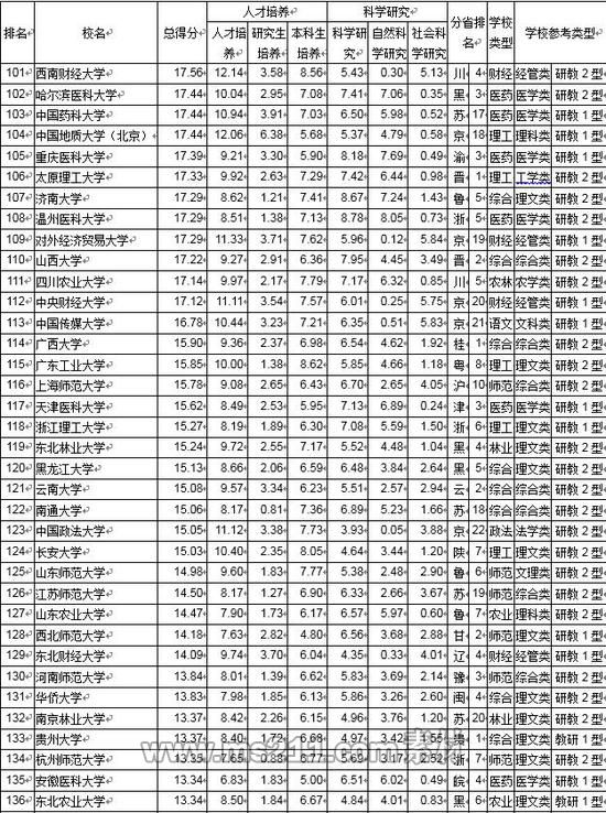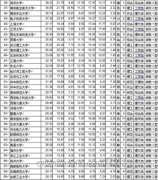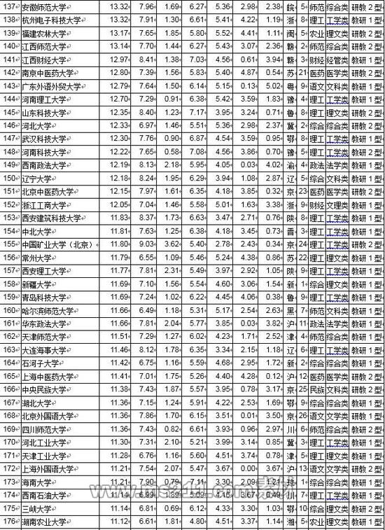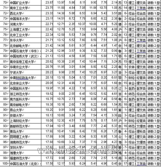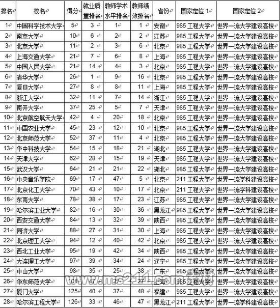 將滿足上述3項條件的大學的3項排名名次相加后升序排列,得分越低排名越前。得分相同,本科畢業(yè)生就業(yè)質(zhì)量高的大學居前。