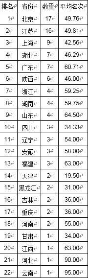 北京市:17所,江蘇?。?6所,上海市:9所