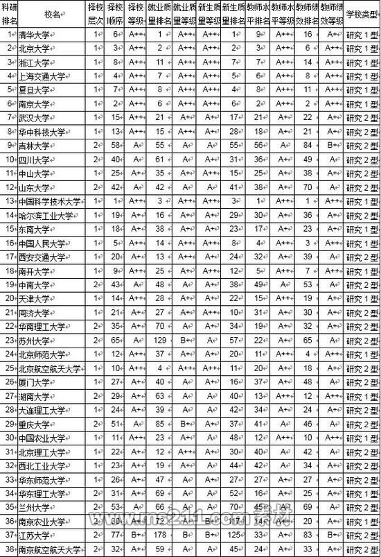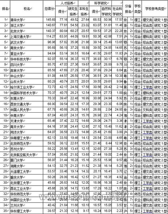 38所研究型大學名單(按科研得分排序):清華大學、北京大學、浙江大學