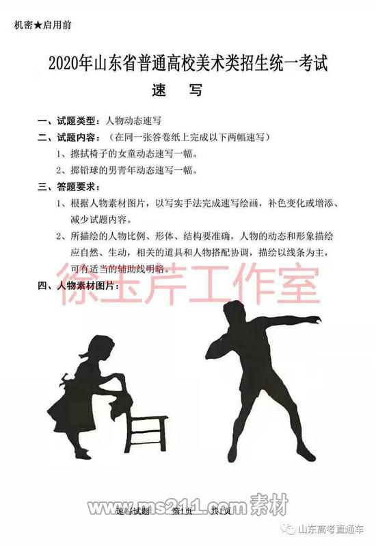 山東2020年美術(shù)類專業(yè)速寫科目的考試內(nèi)容為:擦拭椅子的女童,以及擲鉛球的男青年,要求學(xué)生以寫實手法完成速寫繪畫。