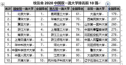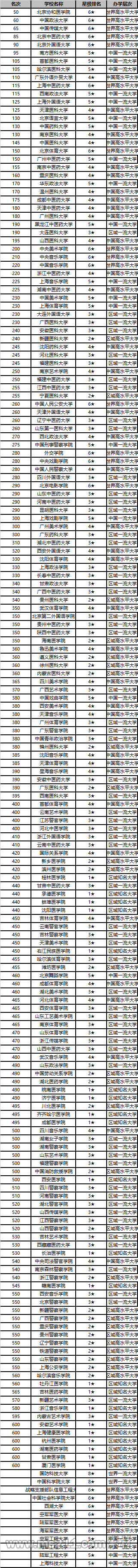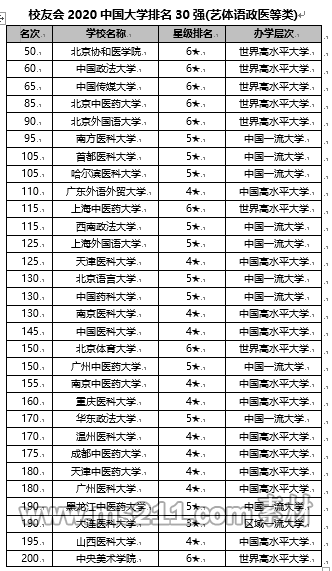 校友會2020中國大學排名(藝體語政醫(yī)等類)