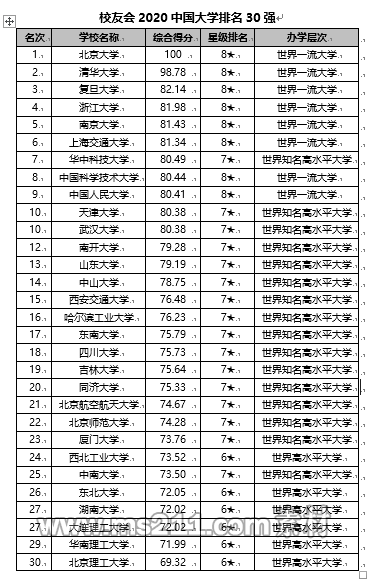 下面是艾瑞深中國校友會網(wǎng)2020中國大學排名800強完整名單: